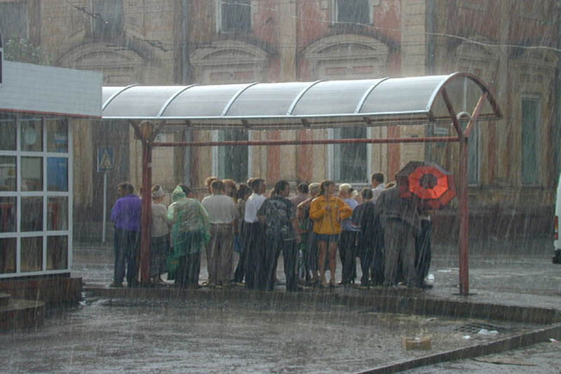 Опять же, отправляйтесь за перспективой в центр города или на окраину, где есть высокие здания. Заберитесь на самое высокое здание, если есть такая возможность разумеется, и начинайте съемку. С высоты вы сможете захватить в кадр гораздо больше деталей и передать на фотографии всю гнетущую атмосферу дождливой погоды. Фотографируйте толпы людей, которые прячутся от дождя до козырьками остановок или магазинов. Такой фотографией вы сможет передать чувство сплоченности людей, рассказать о том, как непогода может сближать их, заставляя укрываться под одной крышей.